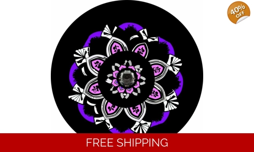 This Spare Tire Cover was printed on a heavy-weight Automotive, Marine 29 oz Expandable Vinyl that will last a long time. The tire cover is held on by a strong shock cord sewn into the back edge. The sideband is attached to the face with upholstered vinyl welting, not a cheap plastic reproduction. Available in black only.