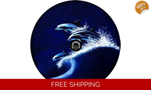 This Spare Tire Cover was printed on a heavy-weight Automotive, Marine 29 oz. Expandable Vinyl that will last a long time. The sideband is attached to the face with upholstered vinyl welting, not a cheap plastic reproduction. The tire cover is held on by a strong shock cord sewn into the back edge. Available in black only.