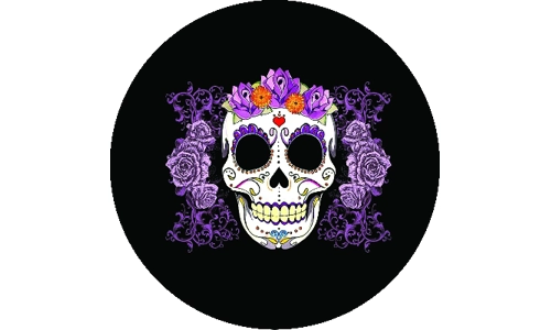 Purple Rose Sugar Skull Spare Tire Cover Summary