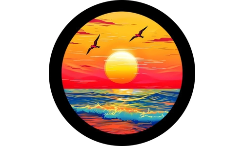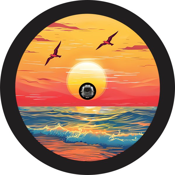 Birds in an Ocean Beach Sunset Jeep Spare Tire Covers Summary